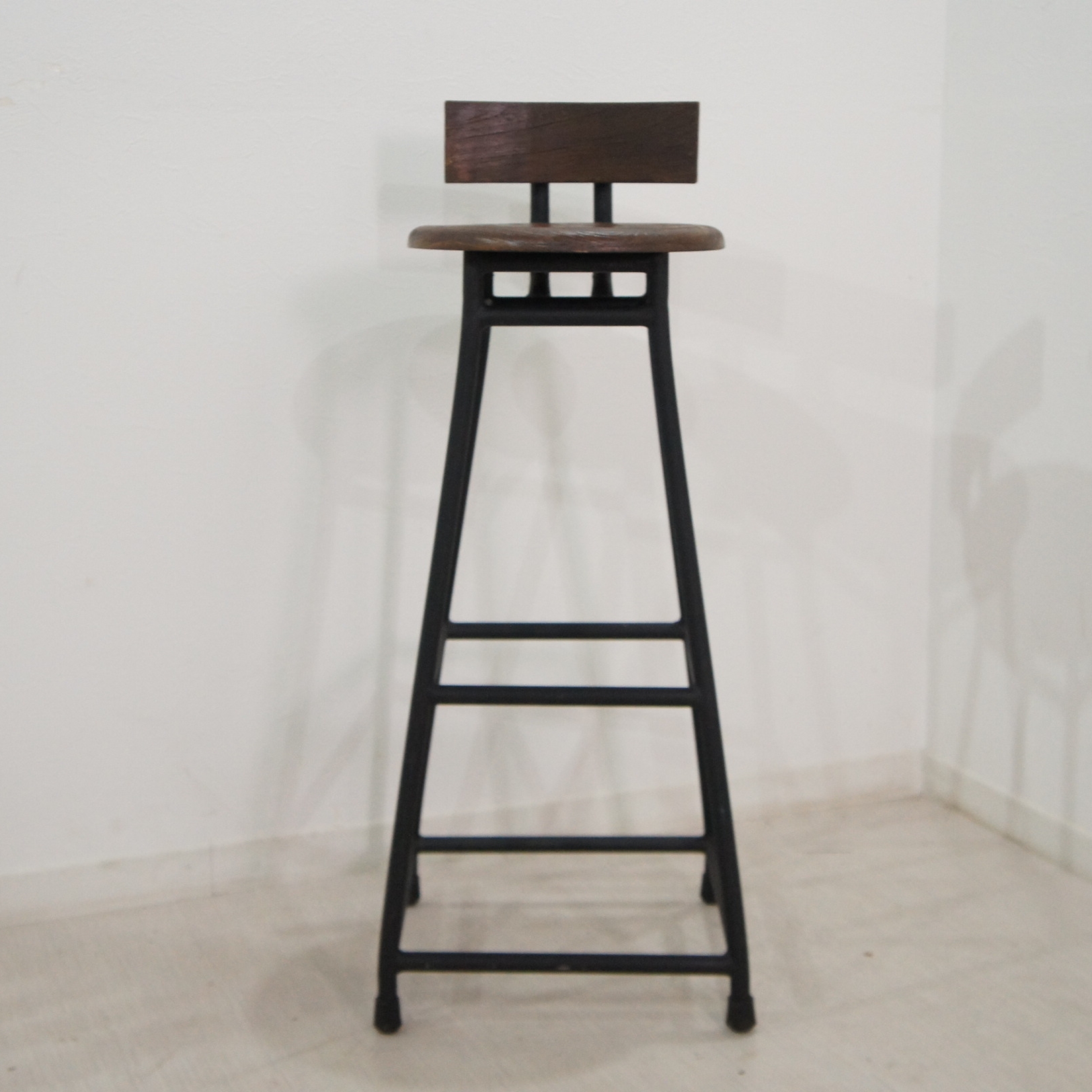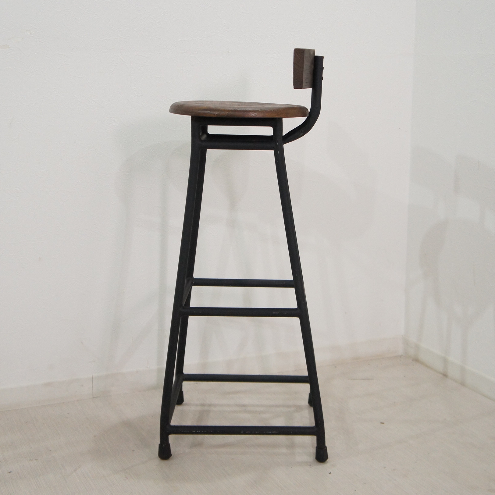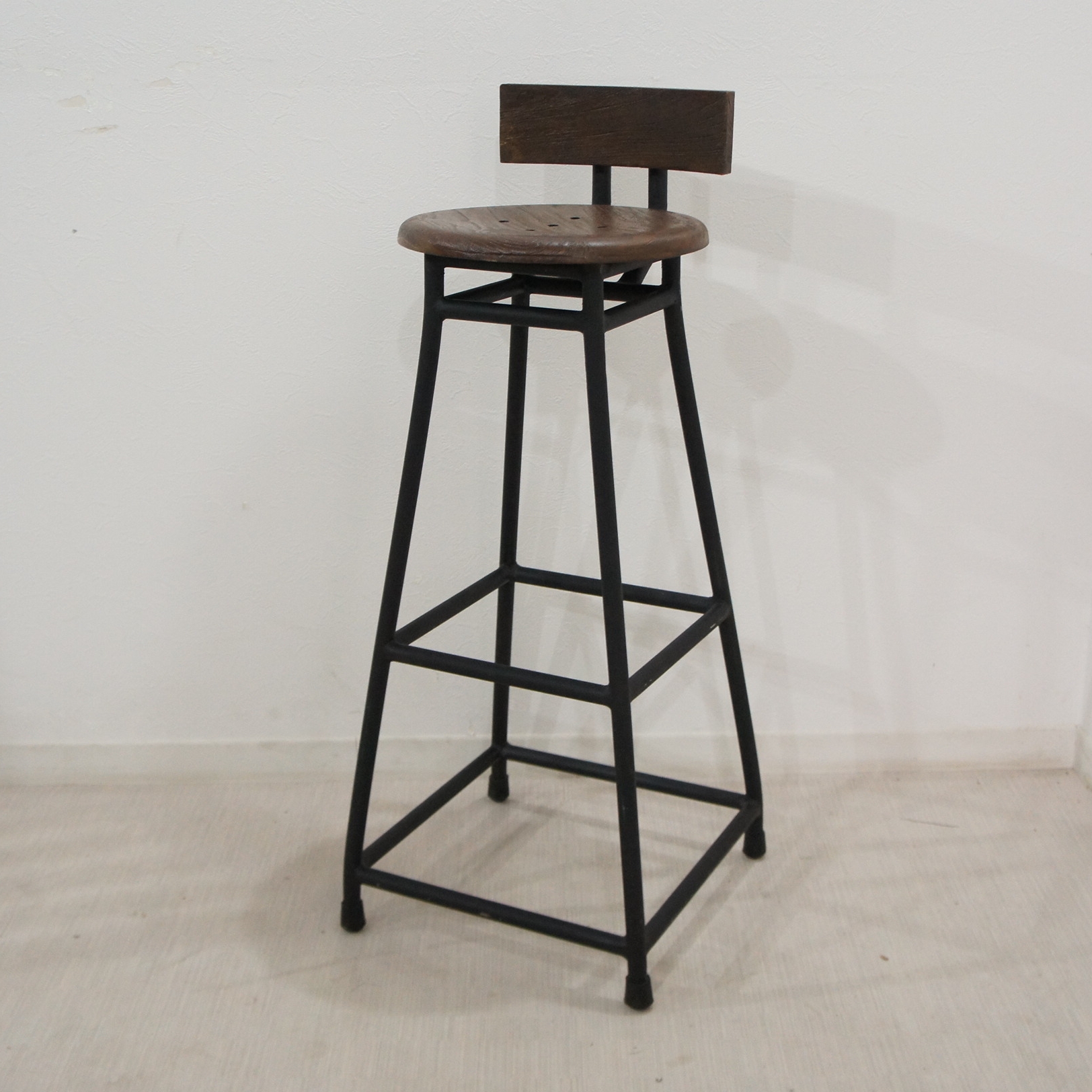ビンテージ調 アイアン 鉄脚 背付き ハイスツール