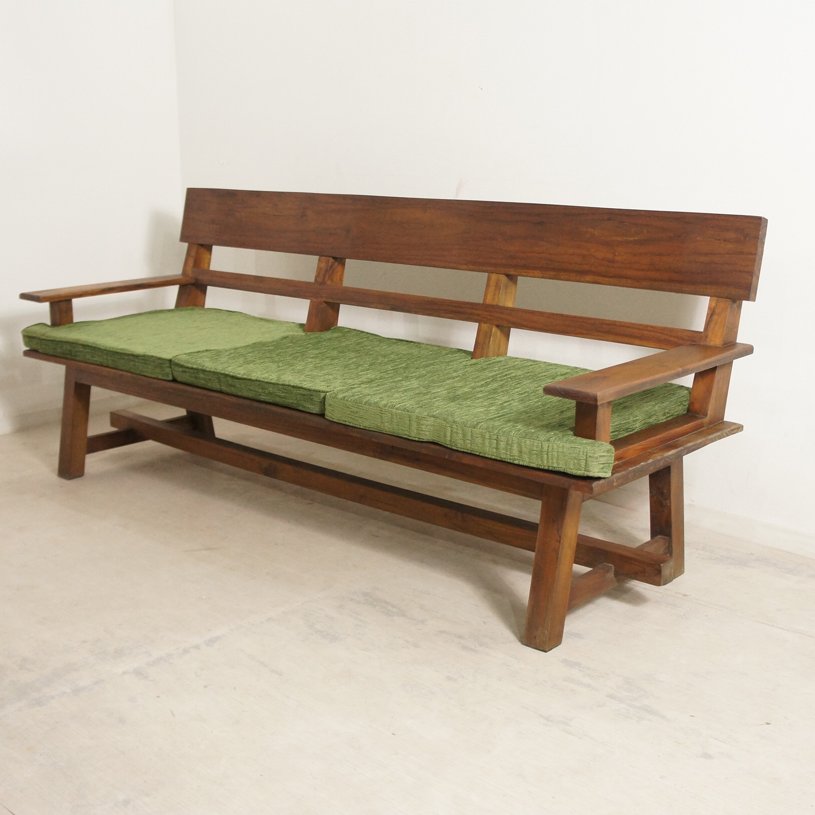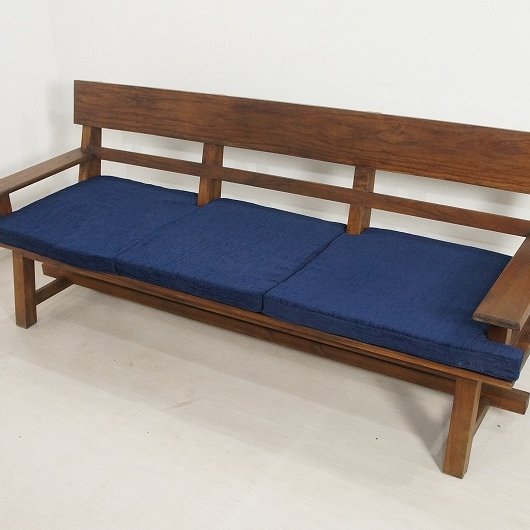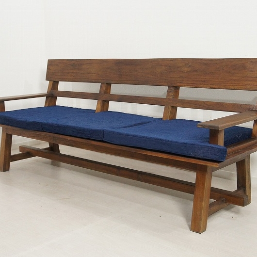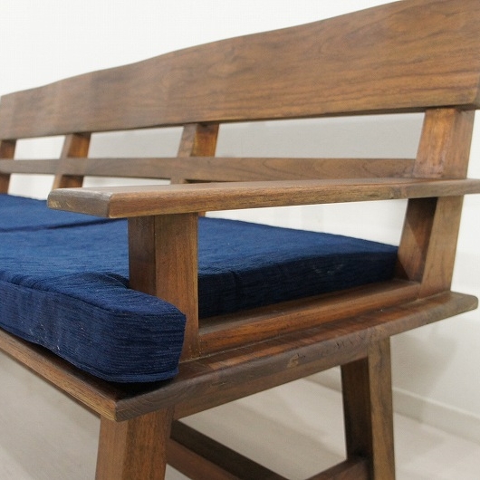 色合いも非常に良く、木目も綺麗で気に入っていただける自信のあるベンチです。 座面のクッションも長く座っても大丈夫なように低反発クッションを使用しております。 クッションを外した状態でもお使いいただけます。