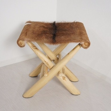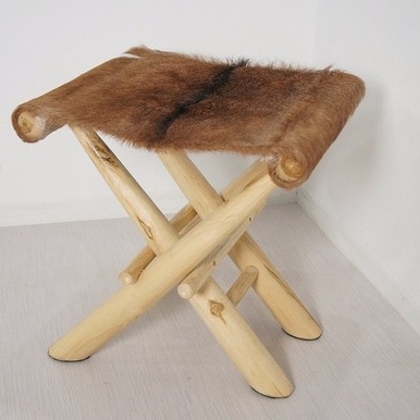 脚はチーク材をナチュラルで座面は毛皮張りになっております。