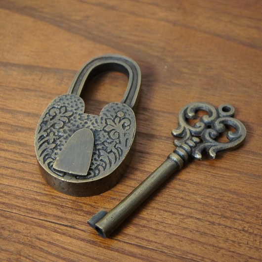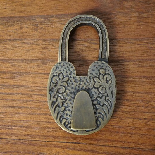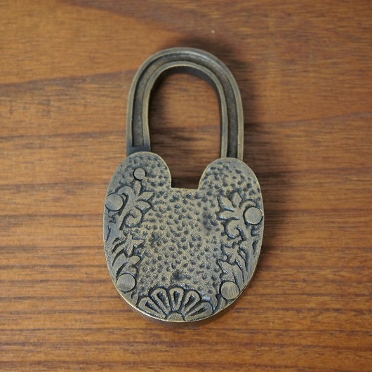 アンティーク調 真鍮製 鍵 南京錠 細長 バティック柄