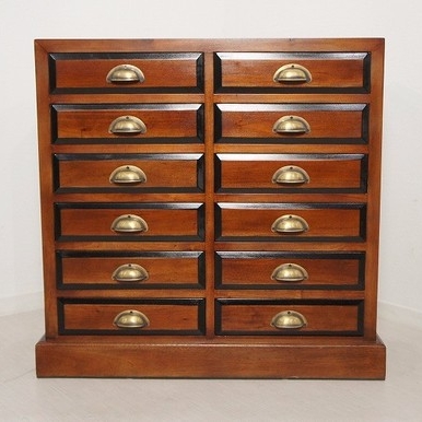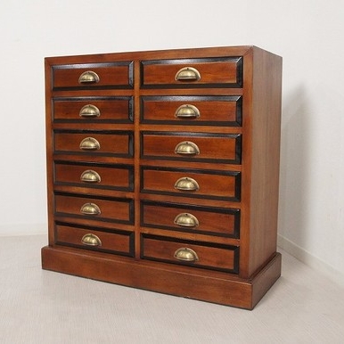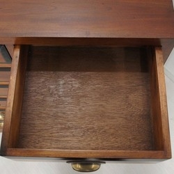赤みかかったマホガニー無垢材にブラスの取っ手が
