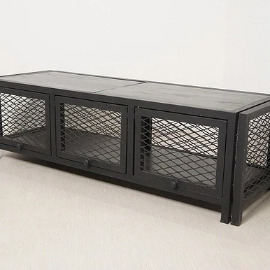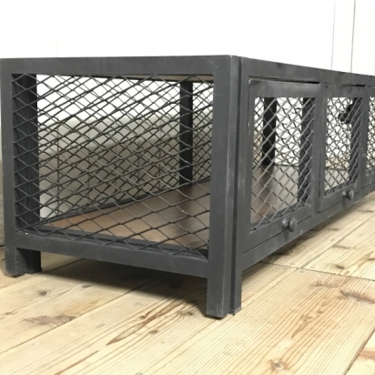 アイアンフレームのインダストリアルなテレビ台です。 ロータイプデザインですので、ワンルームからリビングまで幅広くご使用いただけます。 スライド扉が若干硬いですが、斜めにスライドさせるとスムーズに開閉できます。