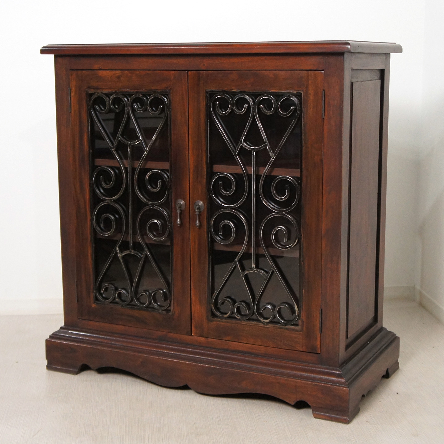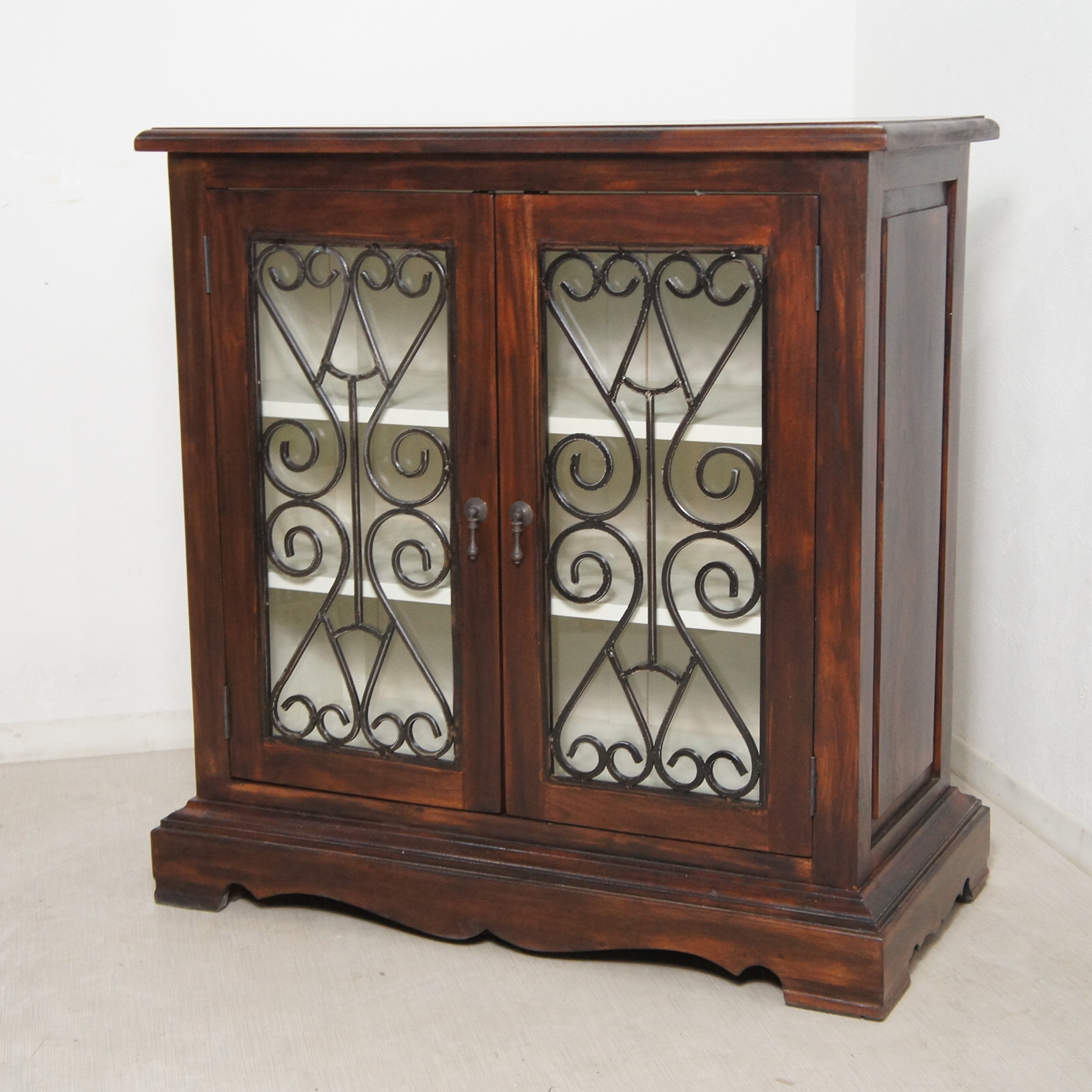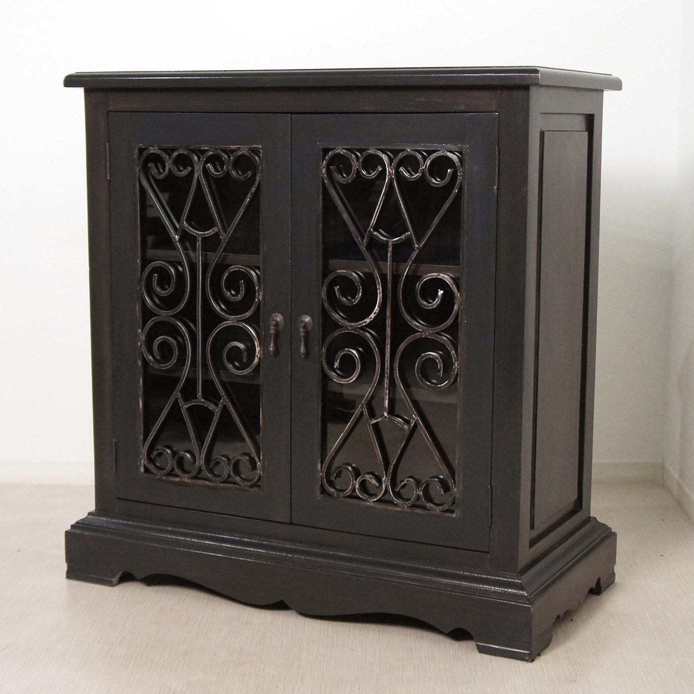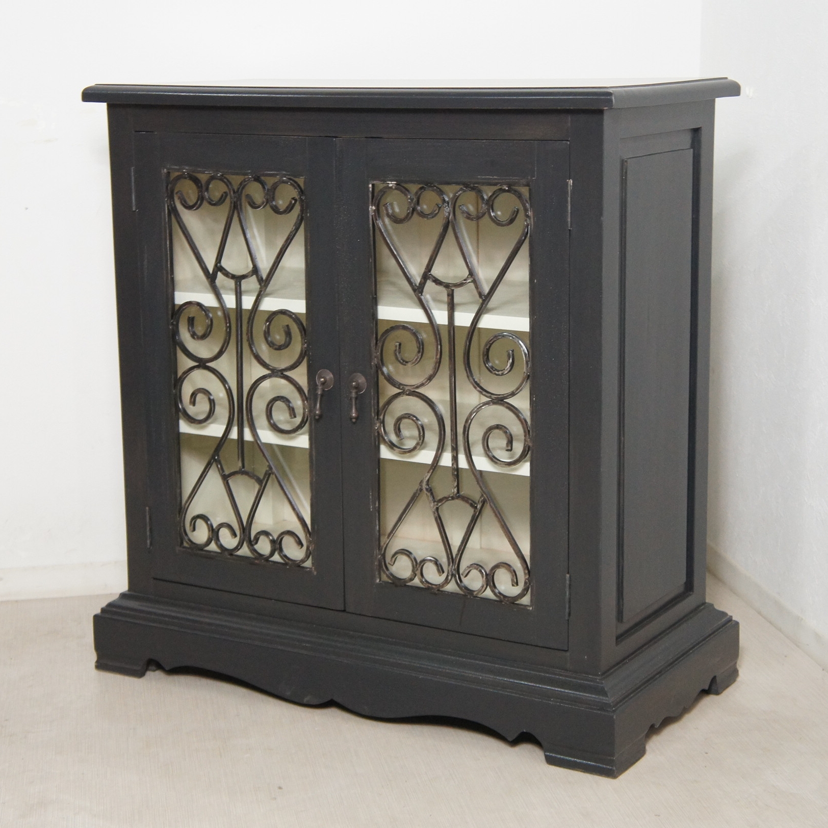 ガラスにアイアンフェイスがついたサイドボードです。 サイドーボードとしても店舗什器のレジスター台としても重宝します。 3段の収納棚でとても収納力があります。