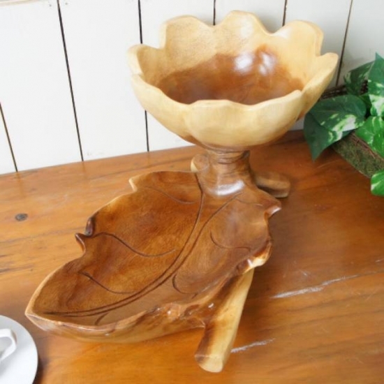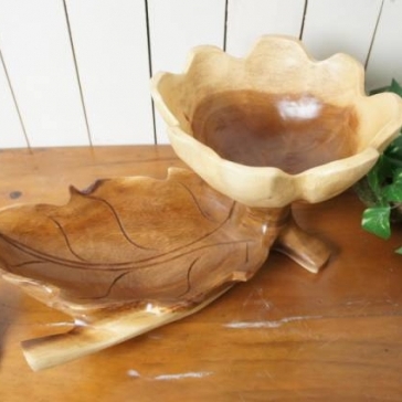 葉っぱと花を形取ったサラダボウル、木製トレイです。 葉っぱと花の部分それぞれが器になっています。 お好みに応じて用途を使い分けください。 材質は ♪この木なんの木気に成る♪ の木です。