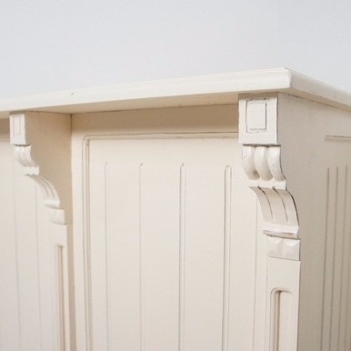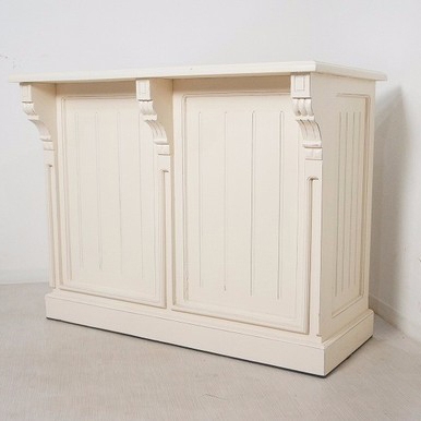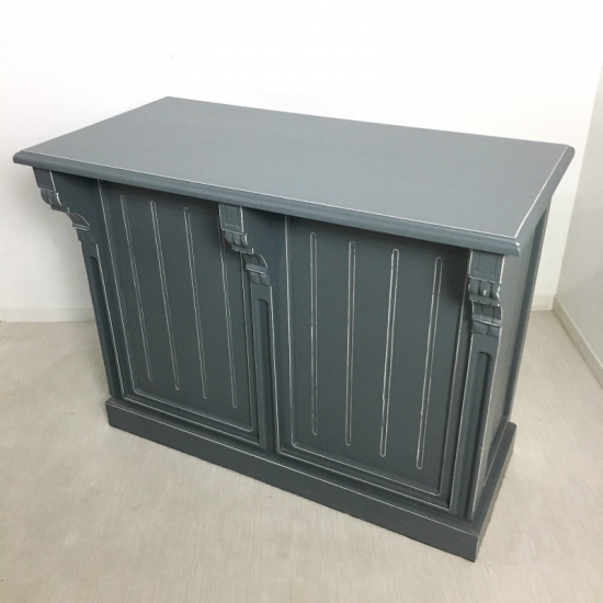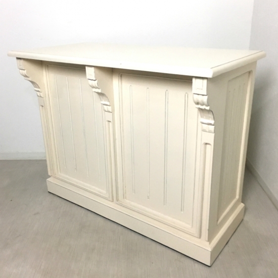 アンティーク調シャビーに仕上げたお洒落なカウンターです。 店舗什器やお部屋のサイドボードとしてもお使いいただけます。 内側には椅子を収めることも可能です。