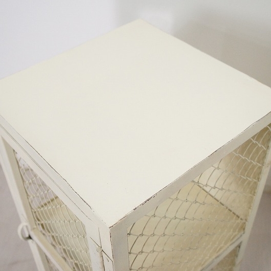 使い込んだ様なアンティーク塗装になっています。 お庭の道具の収納や小さめのグリーンを置くのには最適。 これ一つでお庭の雰囲気も素敵に変わります。