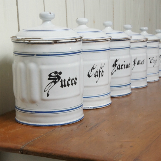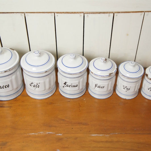 Cafe Sucre Farine… 程度の良いアンティーク琺瑯キャニスターです。 インテリアには最適の6個フルセットです。