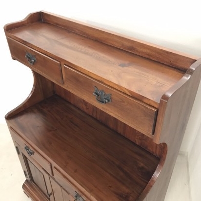 アンティーク調で小振りなキャビネットです。 引出しのハンドルやキャビネット本体の形は アンティークと遜色ない家具となります。