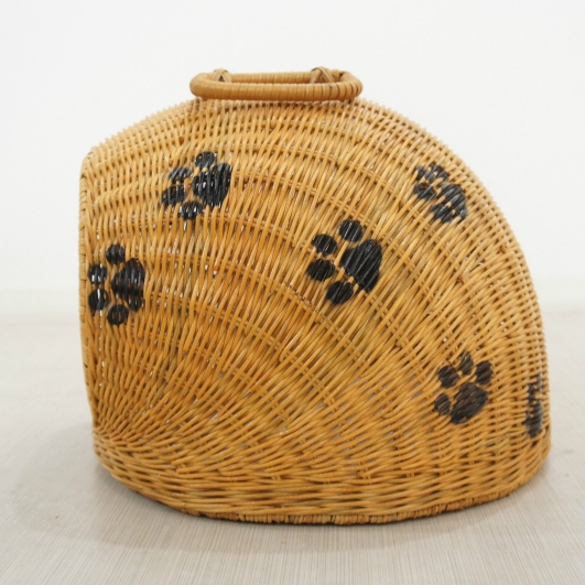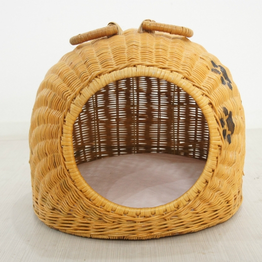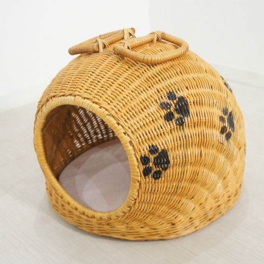 天然ラタンを職人が手作業で編み込んで作った猫・小型犬用ドームハウスです。 中にマットが敷いてありますので、そのまま猫、小型犬の寝床として使用いただけます。 持ち手も付いていますので移動も簡単です。