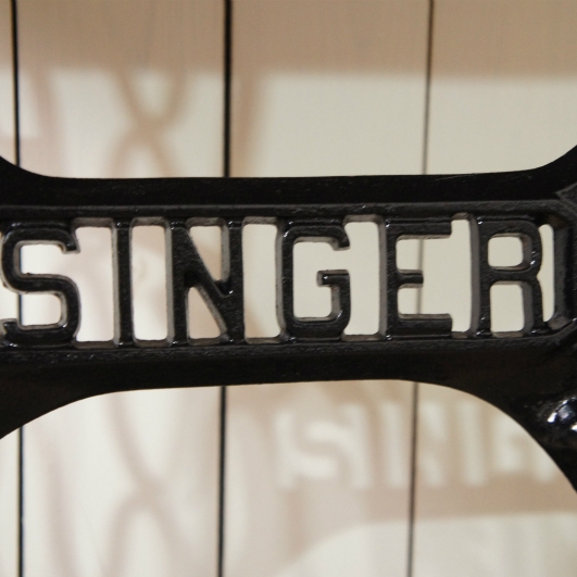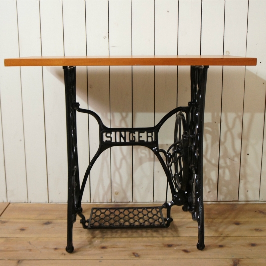 1点物! シンガーミシン脚 テーブルの出品です。 大変希少な英国シンガーミシンの脚を使用した机(テーブル)です。 アイアン部分は塗りなおしてあります。