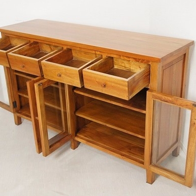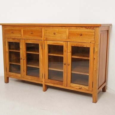 収納力抜群なサイドボードキャビネットです。 客間で収納棚にするのも台所でカウンター水屋でも 使用用途はさまざまです。 総無垢仕上げで重量があります。