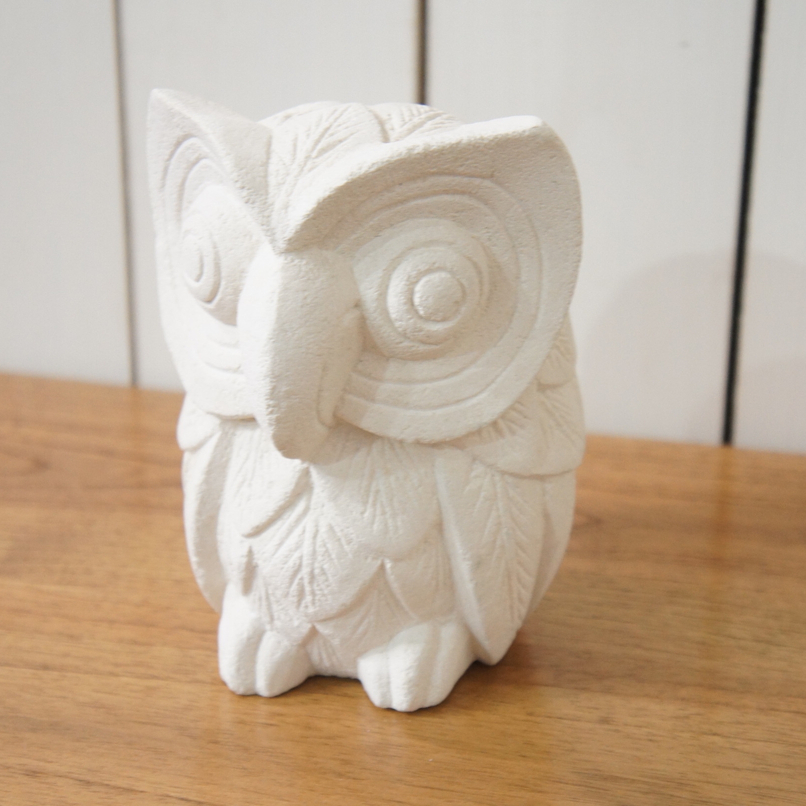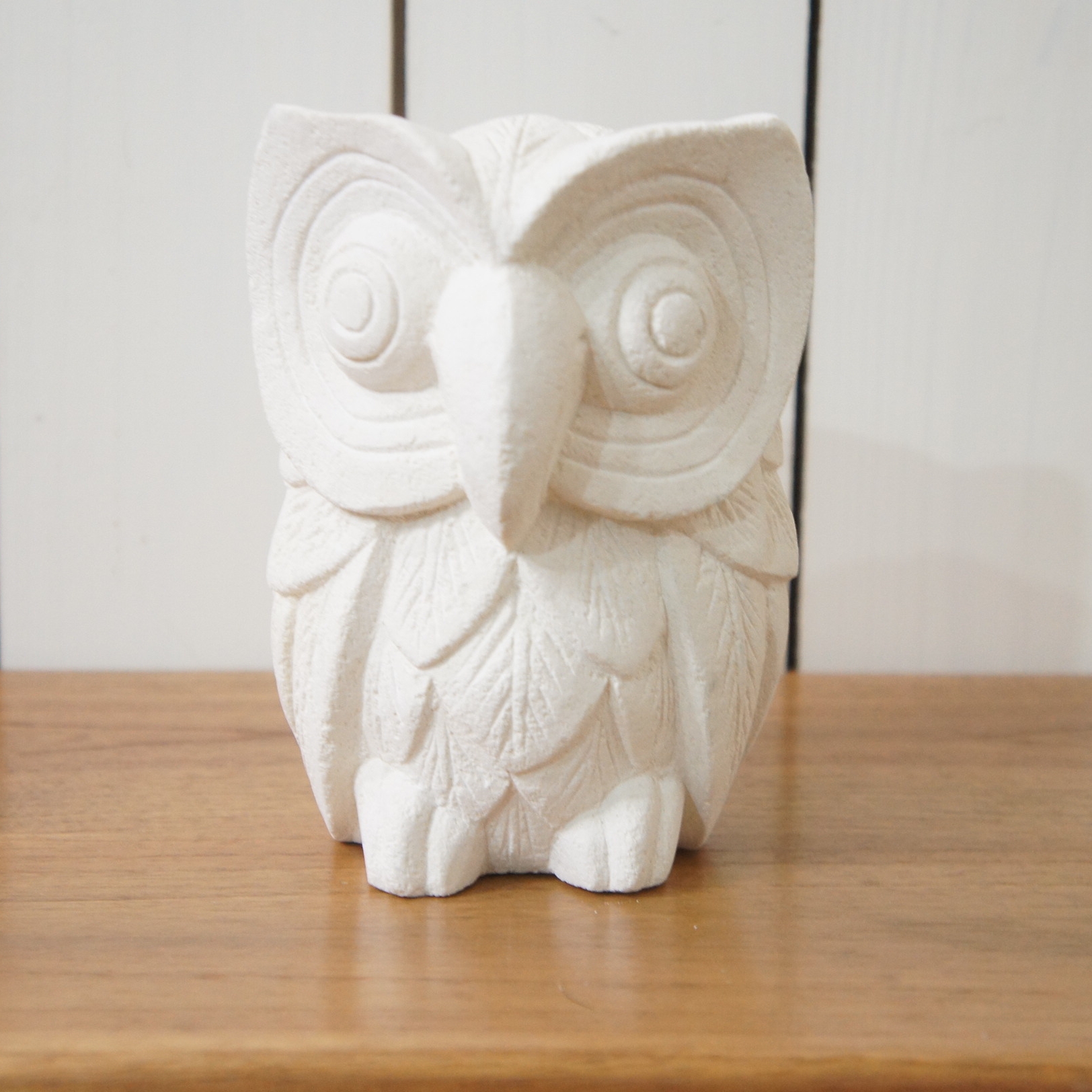 バリ島特有の火山岩(パラス石)を職人が手作業で彫刻したシロフクロウの置物・オブジェです。 シロフクロウは幸せを呼ぶ鳥として人気です。 幸運を呼ぶオブジェとして、いかがでしょうか?