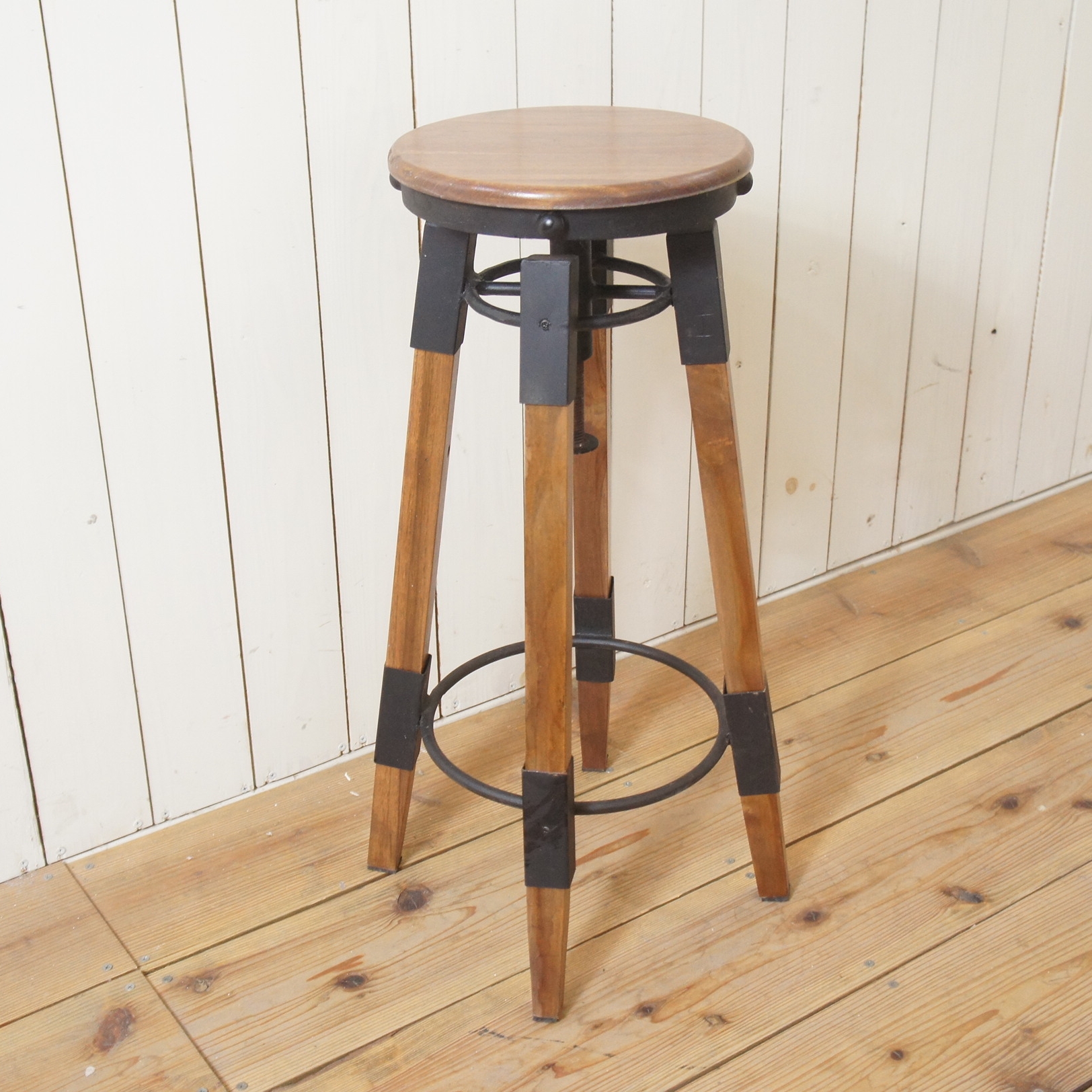インダストリアルな回転ハイスツールです。 アイアンとチークの組み合わせでおしゃれな逸品。 回転させることで高さ調節ができます。
