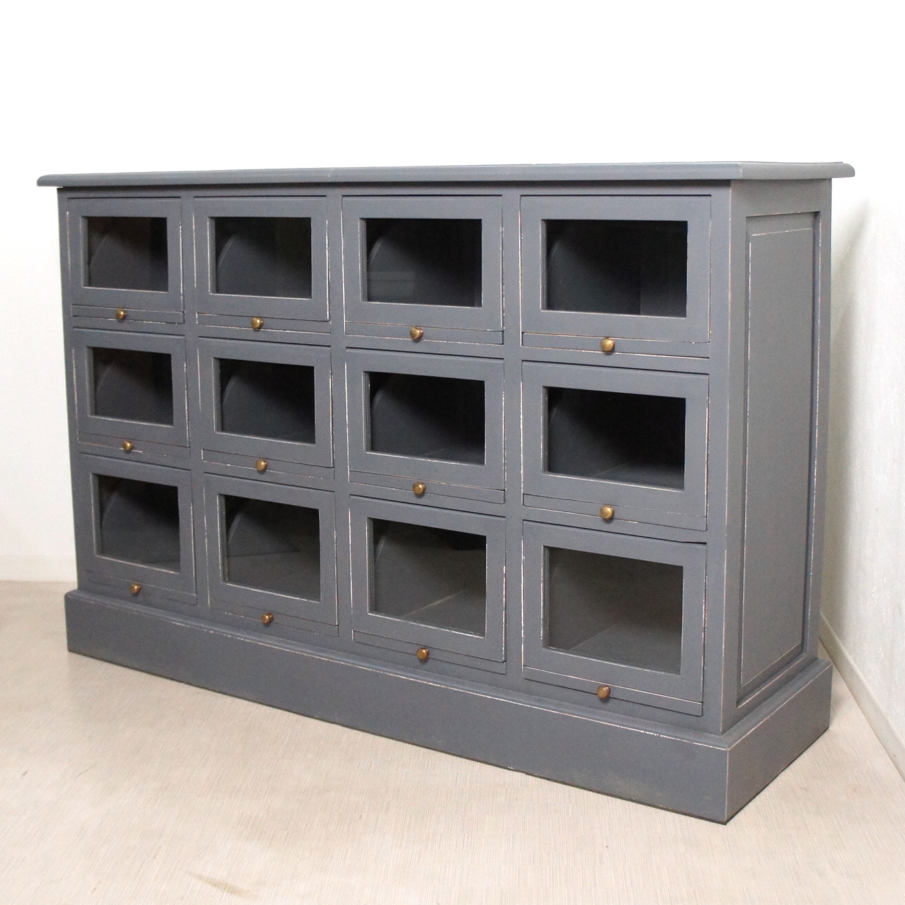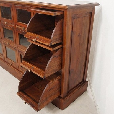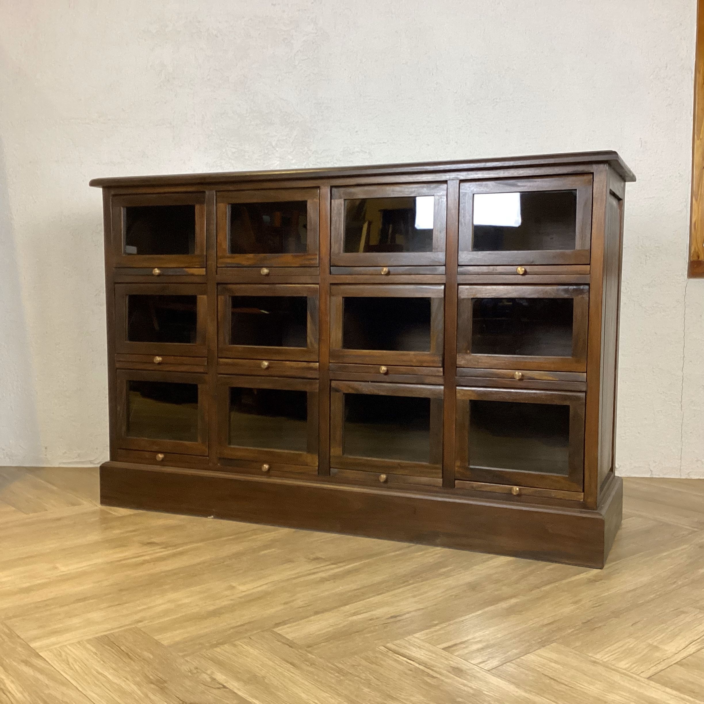 16杯の引出し付きカウンターです。 ツマミを引くと扉がスライドしてポップアップします。 お気に入りスニーカーや小物のディスプレイ収納に また店舗什器としてもお使いいただけます。