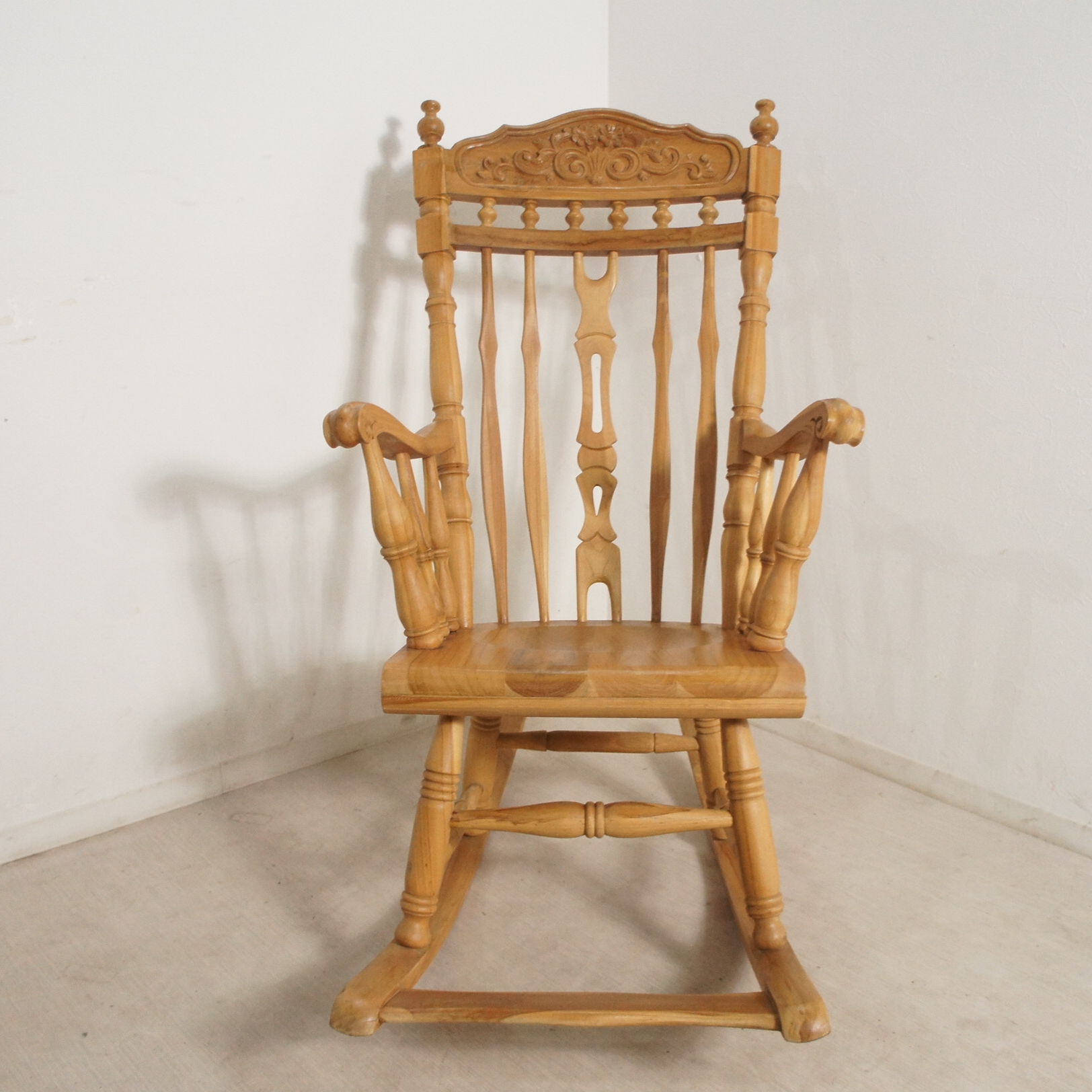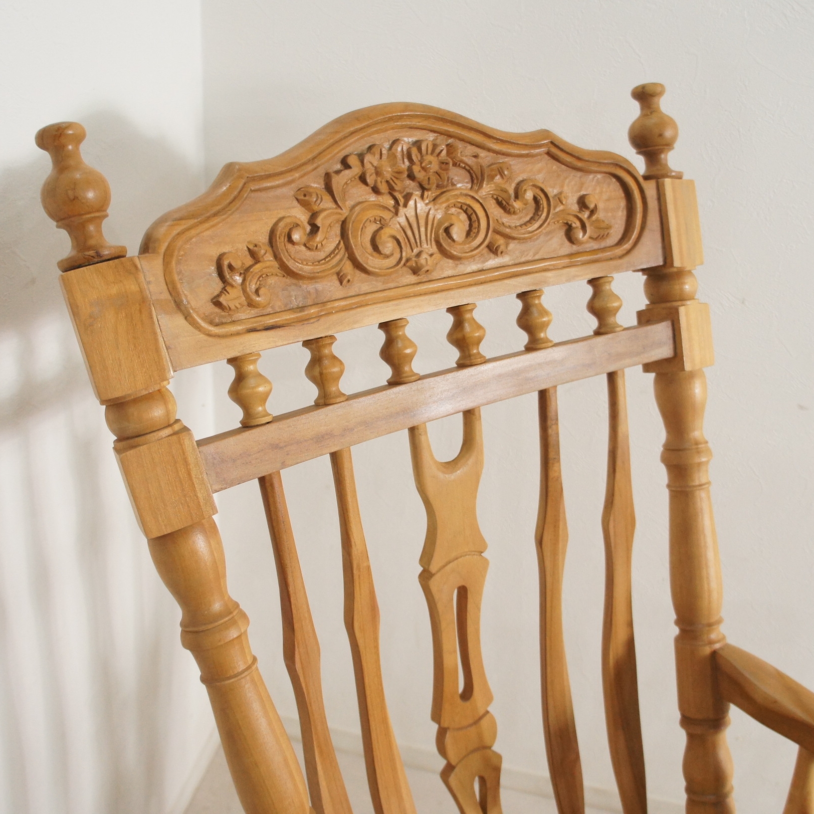 とても形が良くアンティークな雰囲気が漂うロッキングチェアです。 チーク無垢材を使用し時間の経過と共に味わい深くなっていきます。 装飾の彫刻やフレーム全てにおいて技ありの逸品です。