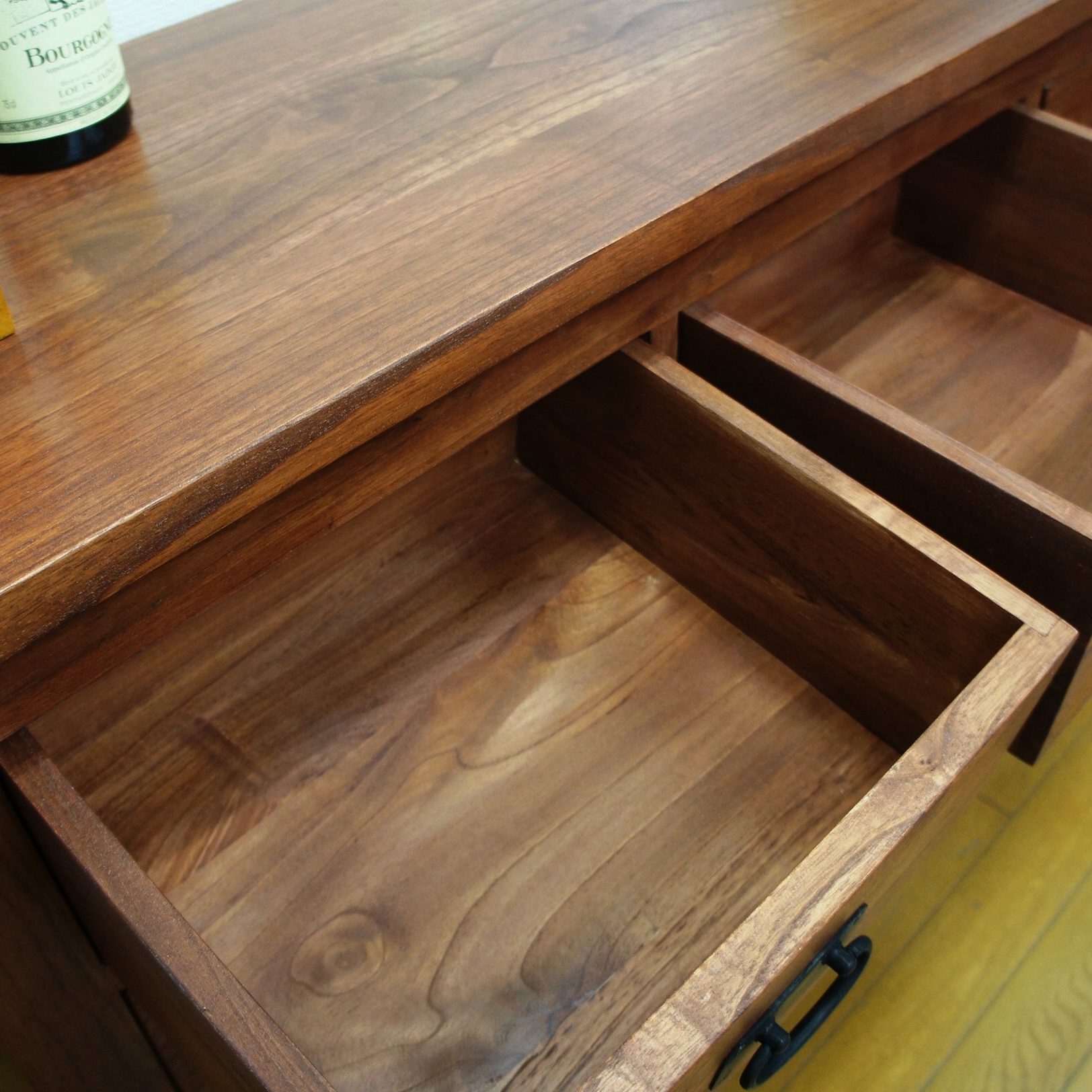 幅 120cm 奥行き 38cm 高さ 65cm 引き出し内寸 上段 幅30.5cm 奥行き 27.5cm 深さ 12cm 中段 幅48.5cm 奥行き 27.5cm 深さ 11.5cm 下段 幅48.5cm 奥行き 27.5cm 深さ 13.5cm