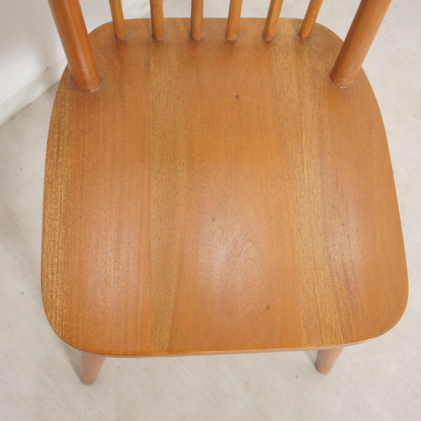 木製チェアで最もオーソドックスで人気のあるタイプです。 材質は使い込むほど良い味の出るマホガニー無垢材です。 座面は少しくぼみを設け座り心地が良くなっています。