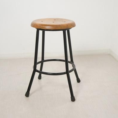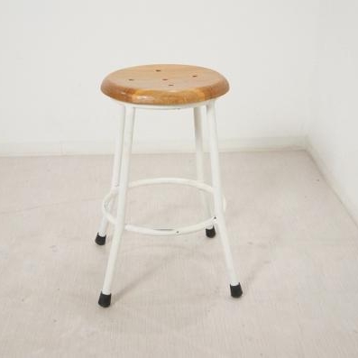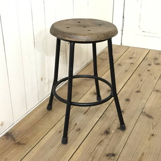 アンティーク調 レトロ 鉄脚スツール 座面チーク