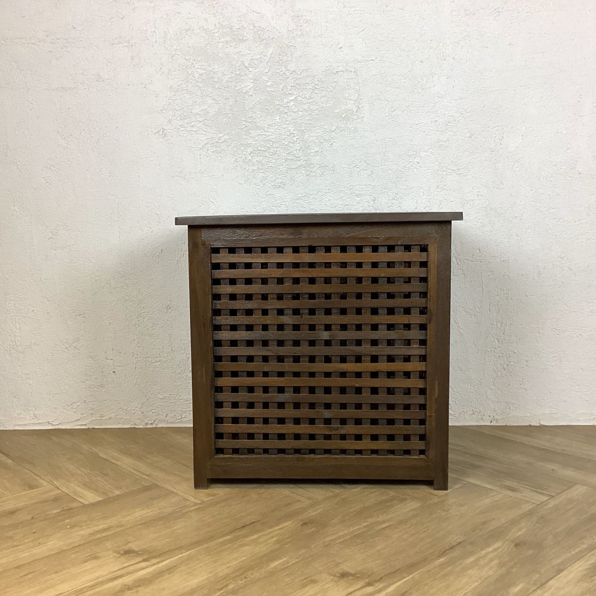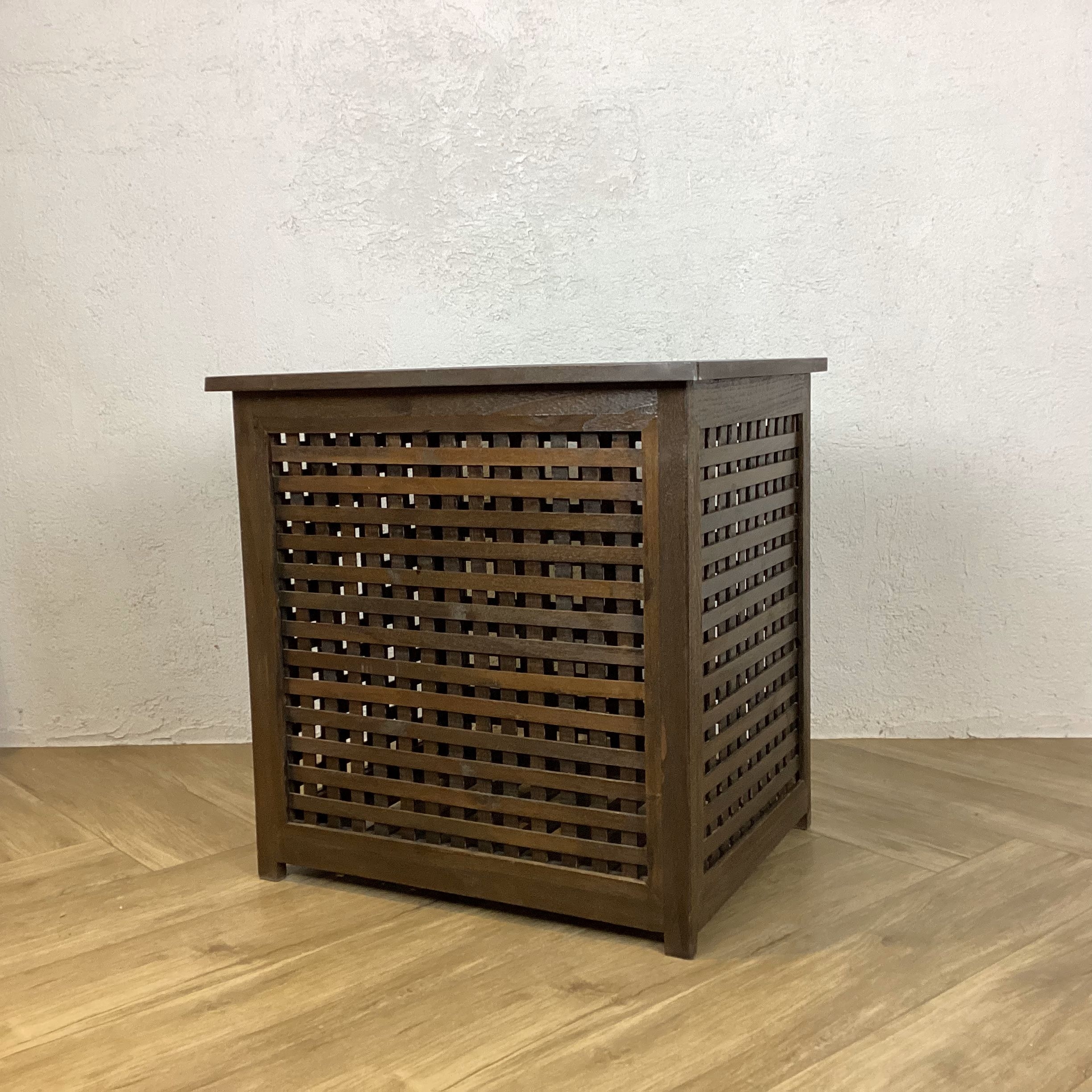 チーク無垢で製作した収納ボックスです、落ち着いた雰囲気でサイドテーブルとしてもお使いいただけます。