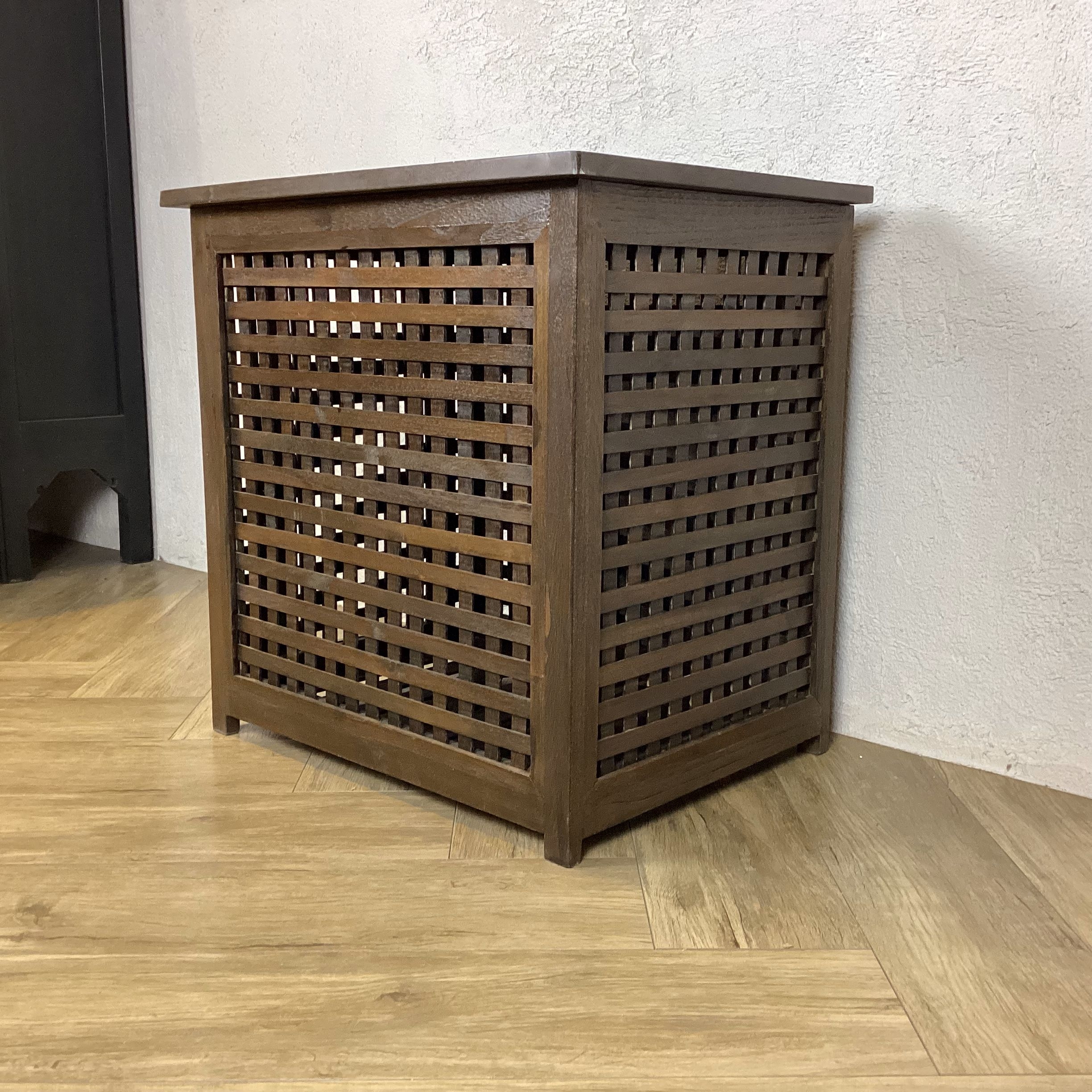 アンティーク調 チーク 無垢 木製収納箱 収納ボックス バスケット L