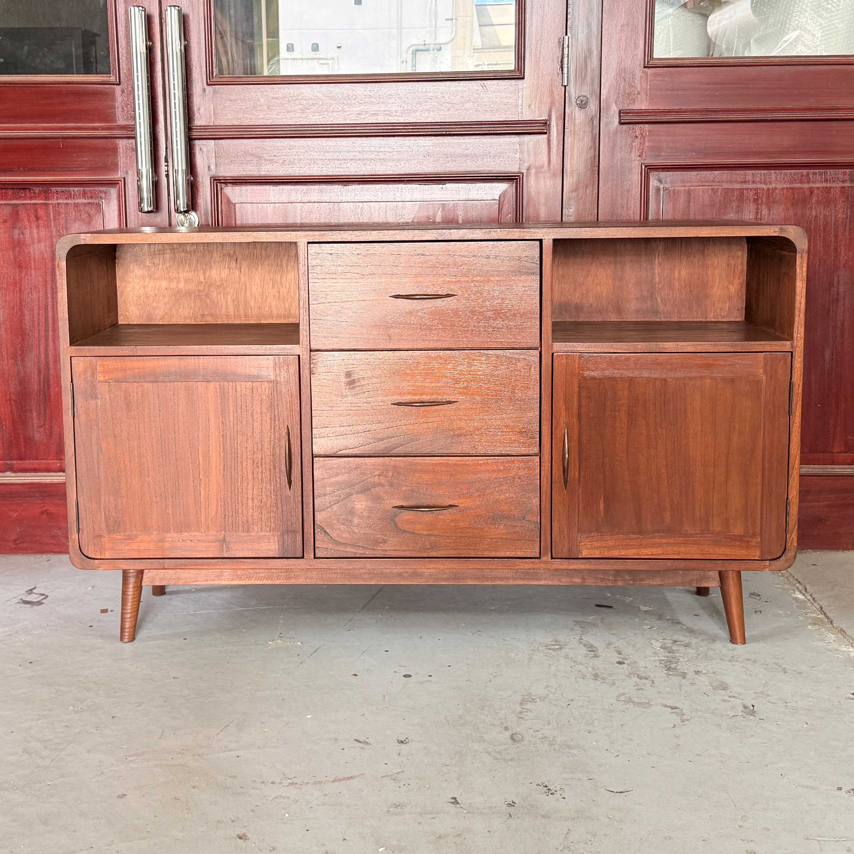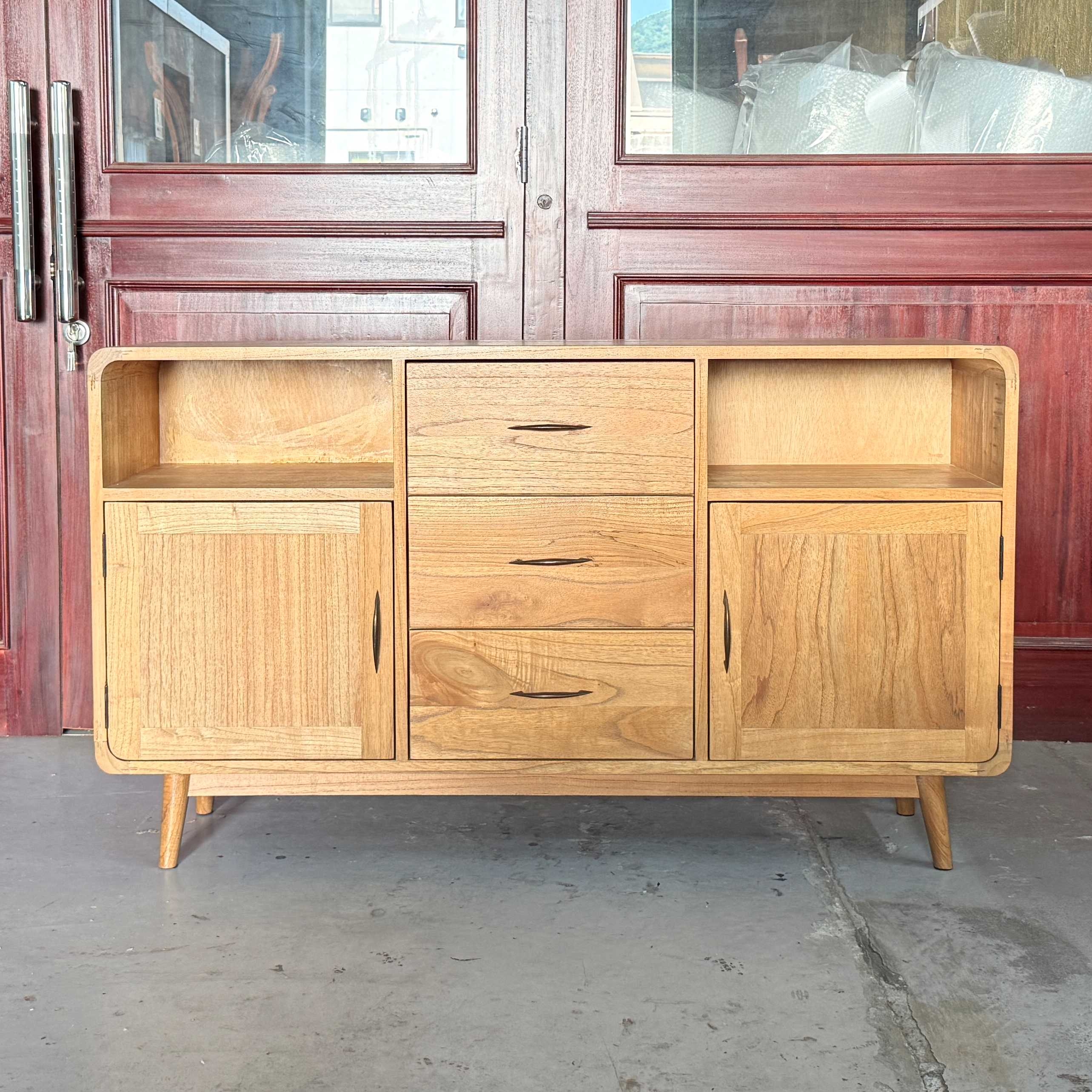 天然木の風合いが美しい、ミンディ無垢材を贅沢に使用した北欧風サイドボードです。