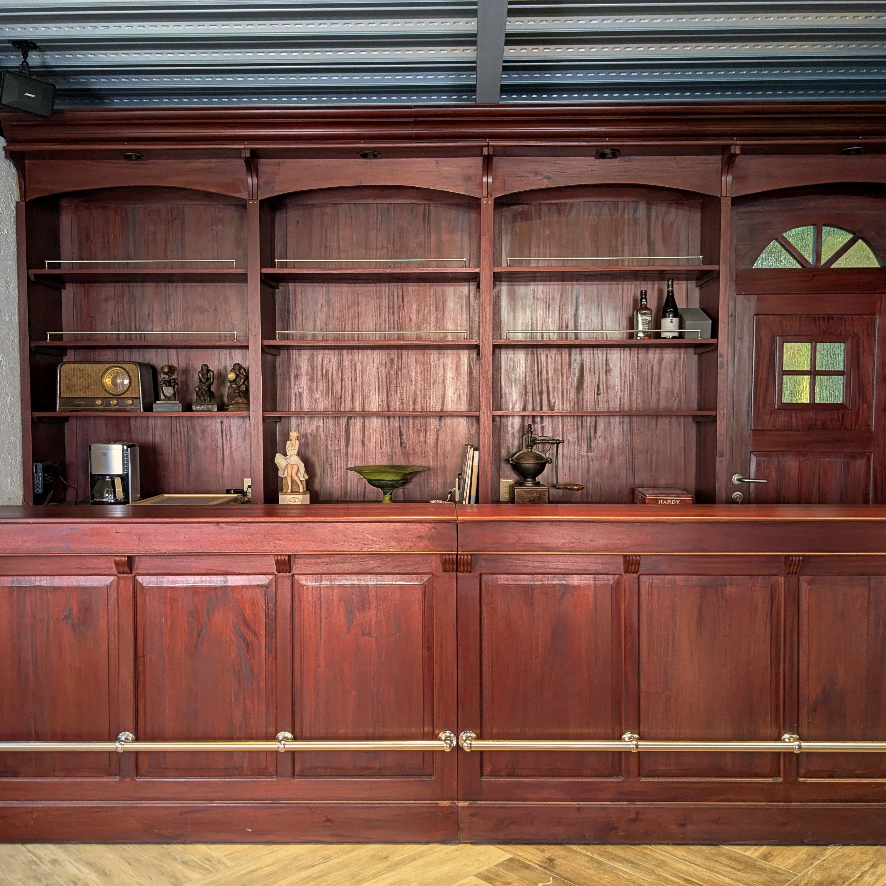 アンティーク調の特大マホガニー無垢バーカウンターが、あなたの店舗や撮影セットを一層魅力的に演出します。長さ336cmの迫力あるサイズは、お客様を圧倒する存在感を放ちます。素材には高品質のマホガニー無垢を使用し、クラシカルで上質な雰囲気を演出します。アンティークな風合いが、空間全体に独特な味わいとノスタルジックな雰囲気を与えます。店舗や撮影セットを贅沢に演出したい方にぴったりの逸品です。