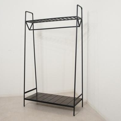 お洒落なお店で見かけるとても形の良いハンガーラックです。 お部屋で普段着をラフに掛け脚元には靴等も置けます。 板がダークで仕上げられ素敵なインテリアに・・