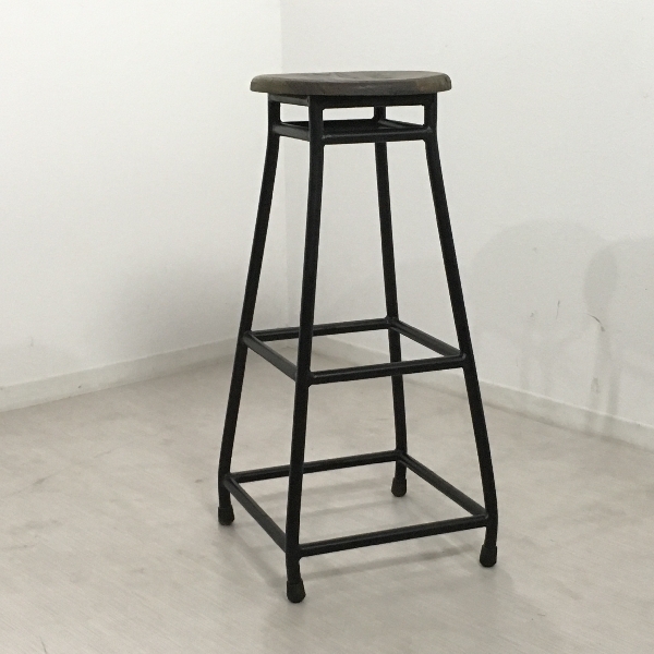 工業系のカウンター用ハイスツールです。 座面はユーズド加工されたチーク材です。 高さが75cmで足を軽く曲げる感じで座れます。